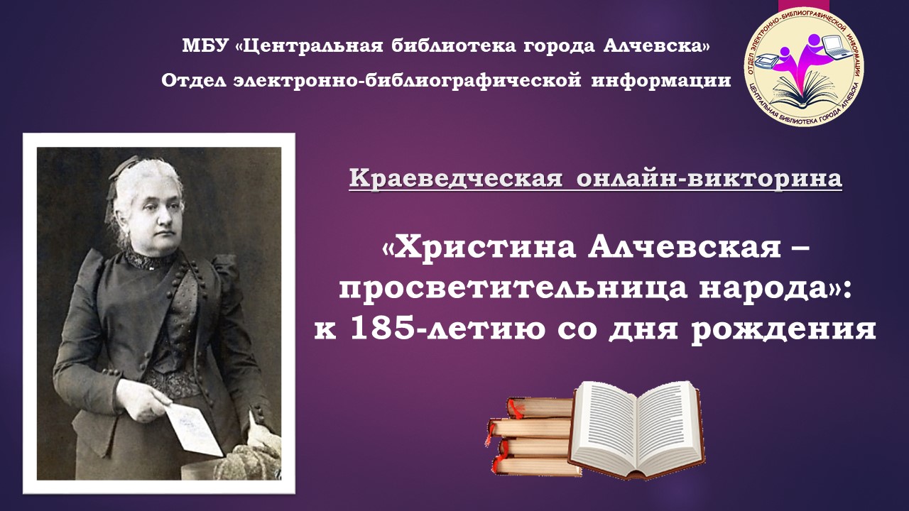 Краеведческая онлайн-викторина «Христина Алчевская – просветительница народа»: к 185-летию со дня рождения