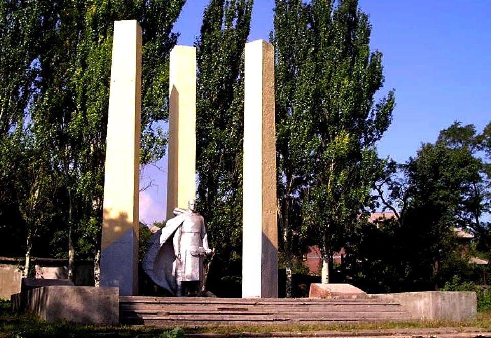 В братской могиле, которая находится на старом городском кладбище, захоронены воины, войсковой части 21139 (62 стрелковый полк), 21739 (2 Польский отдельный рабочий батальон, 632 стрелкового полка и 3-й Гвардейской механизированной бригады, погибшие от ран в госпиталях, развернутых в прифронтовых населенных пунктах во время оборонных боев города Алчевска. В 1949 году установлена чаша, покрытая знаменем, на постаменте. В 1970 году здесь установлен обелиск с рельефным изображением лиц воина в каске, пожилого мужчины в шапке – ушанке и молодой девушки. В основании обелиска высечена дата «1941». На обратной его стороне изображен меч, рассекающий фашистскую свастику, и выбита надпись: «Кто с мечом к нам войдет, от меча и погибнет», в основании обелиска дата «1945».