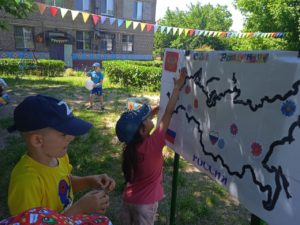 10 июня в рамках проекта «Лицей для малышей» сотрудники библиотеки-филиала № 3 Алчевска провели для дошкольников ГДОУ ЛНР № 17 «Василёк» игру-поздравление «С днём рождения, Россия!», посвященную Дню России.