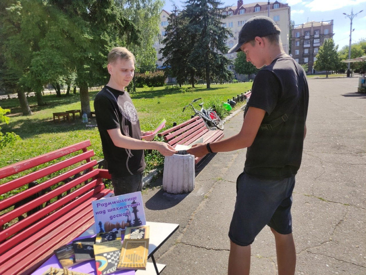 В преддверии этой даты сотрудники библиотеки-филиала № 2 в городском сквере провели информационно-просветительскую акцию «Размышление над шахматной доской».
