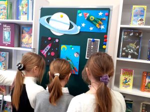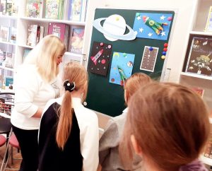 11 апреля библиотекари модельной библиотеки «#БИБЛИОПРОСПЕКТ города Алчевска» провели для учащихся 3-Б класса ГБОУ ЛНР «Алчевская социально-экономическая гимназия» познавательный час «Старт с Земли открыл нам путь», приуроченный ко Дню космонавтики.