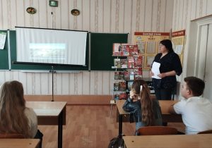 С большим интересом дети посмотрели видеофрагменты из документальных и художественных фильмов о войне. На мероприятии звучали песни и стихи, посвященные городам-героям. Вниманию учеников были представлены книги о Великой Отечественной войне.