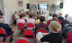 Песни военных лет и песни о войне продолжают поддерживать историческую память и не дают забыть о Великом подвиге нашего народа. Члены литературно-поэтического клуба «Мелодия слова» представили свои стихи и песни, посвящённые подвигу наших дедов и прадедов, а также новым героям, которые сражаются на полях специальной военной операции. Прозвучали стихи и песни в исполнении Антона Москалёва, Яны Рубан, Валерия Комарова, Татьяны Островской, Елены Пляскиной. По приглашению библиотеки с патриотическими стихами выступил полковник полиции Зюков А.М. – участник СВО, член Союза писателей России.