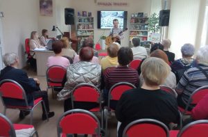 Песни военных лет и песни о войне продолжают поддерживать историческую память и не дают забыть о Великом подвиге нашего народа. Члены литературно-поэтического клуба «Мелодия слова» представили свои стихи и песни, посвящённые подвигу наших дедов и прадедов, а также новым героям, которые сражаются на полях специальной военной операции. Прозвучали стихи и песни в исполнении Антона Москалёва, Яны Рубан, Валерия Комарова, Татьяны Островской, Елены Пляскиной. По приглашению библиотеки с патриотическими стихами выступил полковник полиции Зюков А.М. – участник СВО, член Союза писателей России.