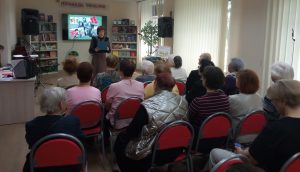 В ходе мероприятия демонстрировались кадры кинохроники и видеопрезентация, звучали песни военных лет, подготовлена тематическая книжная выставка «Великой Победы книжные страницы».