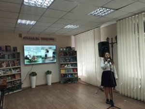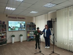 В рамках мероприятий, посвящённых 80-летию Победы советского народа в Великой Отечественной войне, 29 апреля в модельной библиотеке «#БИБЛИОПРОСПЕКТ города Алчевска» состоялась музыкально-поэтическая эстафета «Мы гордимся Великой Победой». Мероприятие прошло в режиме телемоста с Библиотечно-информационным юношеским центром им. В.Ф. Тендрякова Вологодской областной универсальной научной библиотеки им. И.В. Бабушкина.