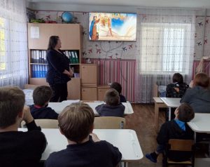 Мероприятие сопровождалось показом видеоролика «Возникновения письменности на Руси», юмористическим киножурналом «Ералаш» − «Почему мы так говорим?», «Красивые слова», мультфильма «Пишичитай». Это встреча стала для детворы не только познавательной, но и доставила массу положительных эмоций.
