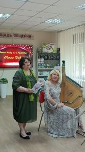 В этот раз присутствующих ждал приятный сюрприз: мпк «Мелодия слова» торжественно открыл музыкальный салон, в котором любители поэзии, авторской песни и классической музыки могут встречаться с интересными творческими людьми. Первая такая встреча в музыкальном салоне познакомила присутствующих с профессиональным музыкантом, бандуристкой Еленой Симоновой. Елена – Лауреат Международного и Всероссийских конкурсов исполнительского мастерства, в недавнем прошлом преподаватель, доцент кафедры народных инструментов Донецкой музыкальной Академии. Она представила слушателям программу инструментальной и вокальной музыки «Чарующие струны души». Слушатели познакомились с звучанием народного инструмента – бандуры и, исполненными произведениями классиков – Баха, Альбениса, Мийо, Рахманинова, Донецкого композитора Евгения Милки, композитора из Воронежа Елены Ткачёвой. Вокальные произведения красивого, академического голоса Елены Симоновой в сопровождении инструмента прекрасно сочетались с поэтическими строками участников клуба «Мелодия слова».