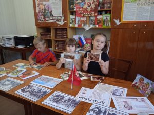 Дети с большим интересом слушали рассказ библиотекарей о тяжелых событиях войны, о героизме и мужестве советских солдат и простых граждан, вставших на защиту своей Родины, среди которых было много детей и подростков.