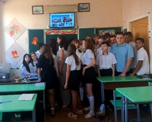 1 сентября 2025 года сотрудник детского отдела модельной библиотеки #БИБЛИОПРОСПЕКТ города Алчевска приняла участие в «Разговоре о важном» с учащимися 8-Б класса АСШ №17. Мероприятие началось с просмотра видеообращения, в котором президент Российской Федерации В. В. Путин поздравил всех учащихся с Днем знаний.