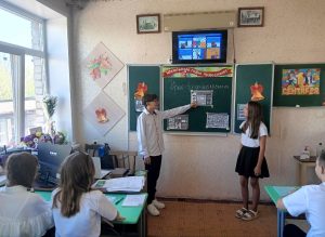 1 сентября 2025 года сотрудник детского отдела модельной библиотеки #БИБЛИОПРОСПЕКТ города Алчевска приняла участие в «Разговоре о важном» с учащимися 8-Б класса АСШ №17. Мероприятие началось с просмотра видеообращения, в котором президент Российской Федерации В. В. Путин поздравил всех учащихся с Днем знаний.
