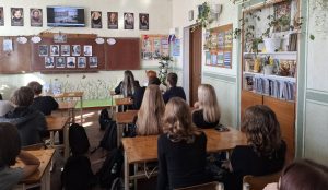 Библиотекарь рассказала учащимся о героях-земляках, вставших на защиту Родины и о том какой ценой в сентябре 1943 года был освобожден Алчевск от немецко-фашистской оккупации. Подростки посмотрели видео, в котором увидели, как выглядел город раньше и каким он стал сейчас.