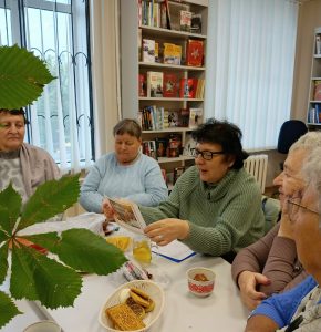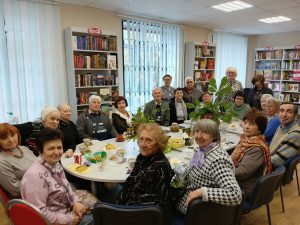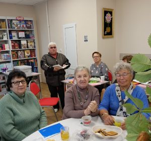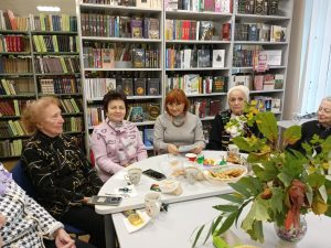 Музыкально-поэтический час общения продолжился за круглым столом с чашкой чая с вкусным пирогом. Читали авторские стихотворения о золотом возрасте, осени, и конечно, вспомнили полюбившуюся поэтическую классику.