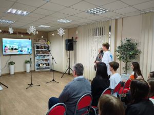 5 декабря, в День волонтёра, в модельной библиотеке #БИБЛИОПРОСПЕКТ города Алчевска состоялась онлайн-встреча волонтёров Алчевска и Вологды «Мы – волонтёры России». В ней приняли участие заместитель Главы городского округа муниципальное образование городской округ город Алчевск Луганской Народной Республики Зайцев Сергей Валентинович, участник СВО, начальник отдела молодёжной политики Администрации городского округа муниципальное образование городской округ город Алчевск Луганской Народной Республики Заика Анна Юрьевна, сотрудник молодёжного центра «Горком 35» Константин Зайцев, представитель волонтёрской роты «Боевое братство» /г. Вологда/, а также активисты волонтёрских отрядов города Алчевска: волонтеры Победы «Чистые сердца» ГБУДО ЛНР «АЦДЮТ», «Движение первых», «Добрые сердца ДонГТУ», «Дорогами добра» МТК ФГБОУ ВО «ДонГТУ» и другие добровольцы города.
