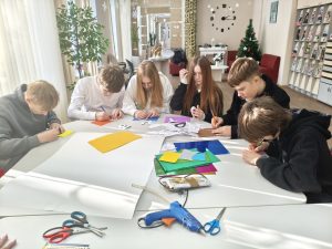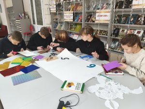 В конце мероприятия библиотекари предложили ученикам создать общий плакат − творческое послание, главным слоганом которого стала фраза «Творчество объединяет». Участники с энтузиазмом приступили к заданию, раскрыв свой творческий потенциал. Созданный совместный плакат − не просто художественная работа, а зримый результат общего опыта: в нём отразились и личные идеи, и дух командной работы, и радость от процесса.