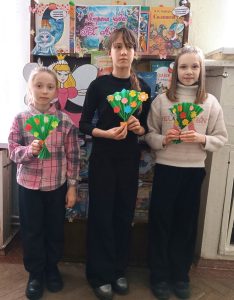 Библиотекари рассказали детям об истории возникновения Международного женского дня, а мальчики поздравили девочек стихами.