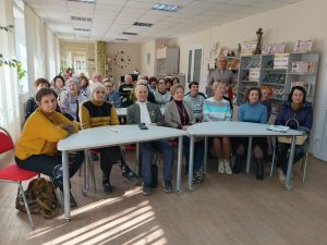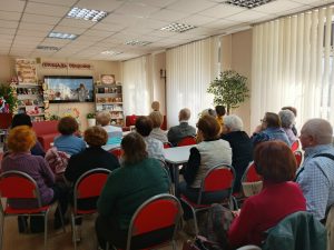Для слушателей университета библиотекарь подготовила видеопрезентацию и фрагменты полюбившихся фильмов с участием любимого актера. Присутствующие приняли активное участие в музыкальной киновикторине «Мироновские шаржи», посвящённой творчеству любимого артиста, вспомнили и вместе подпевали песни из популярных фильмов.