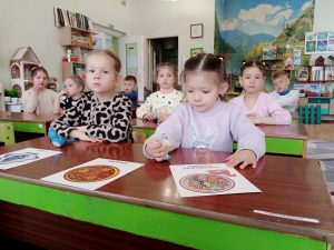 1 апреля библиотекари библиотеки-филиала № 5 для детей провели для воспитанников ГБДОУ ЛНР «Ясли-сад комбинированного вида № 34 «Жемчужина» информационный вояж «Узоры народов России».