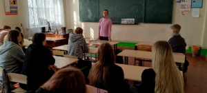 9 апреля 2026 года библиотекарь пункта выдачи МБУ «Центральная библиотека города Алчевска» провела для учащихся 9 класса ГБОУ ЛНР «УВК “Росток”» минуты скорби «Символ несгибаемости и стойкости Донбасса», приуроченные ко Дню памяти жертв украинской агрессии.