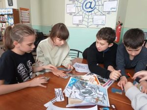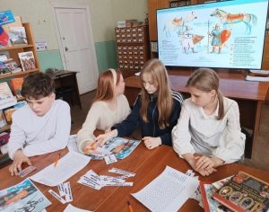 Ребята разделились на две команды и отвечали на вопросы викторины «Невский в вопросах и ответах», составляли цитаты великого князя, отгадывали филворд «Дружинник Александра Невского», снаряжали древнерусского воина и тевтонского рыцаря в конкурсе «Дружинник против рыцаря», участвовали в игре «Защитник Отечества» и собрали пазл «Орден Александра Невского».