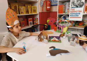 Особый интерес у ребят вызвал мастер-класс «Русская изба, юрта, чум». Здесь ребята не просто прослушали информацию о жилищах разных народов, но и сами собирали части традиционного быта. Они угадывали материалы, бревна для русской избы, войлок для юрты и оленьи шкуры с жердями для чума. Затем девчонки и мальчишки смастерили бумажных кукол в национальных костюмах, а также макеты русской избы и башкирской юрты.