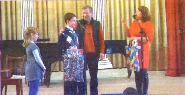 — Чувство исполненного долга, — отвечает Андрей Усачев. — Наверное, свою внутреннюю правоту, верность своих убеждений. Все СМИ пишут обо всем по-своему, а чтобы судить о чем-то, надо видеть своими глазами. Я вижу, что, несмотря на все сложности, которые испытывает ЛНР, у вас все нормально. Дети, как и как и положено, растут веселые, жизнерадостные. Я понимаю, что взрослым не так весело. Но дети растут хорошие, умные. Смеются в правильных местах, понимают юмор. Я так понимаю, что идет большая патриотическая работа, но обязательно должно оставаться место для радости. Чтобы ребенок развивался полноценно и гармонично, ему нужно давать и культурное воспитание, ему нужно читать книги, слушать музыку. Приятно видеть, что у вас все это есть. Зал замечательный здание красивое, есть хорошие традиции. Я вот узнал, что музыкальная школа названа в честь оперного певца Ивана Алчевского, что его семья — основатели вашего города. Порадовался, что дети об этих традициях знают, воспитываются в уважении к ним. Пока такие дети у нас есть, у взрослых есть надежда, что человеческая жизнь будет продолжаться. Московские волшебники привезли подарки — книги Андрей Усачева для городской библиотеки. Но предусмотрительные зрители захватили любимые сборники из библиотек домашних, чтобы получить автограф автора — и за автографами выстроилась целая очередь. Были и другие подарки. Луганская библиотека для детей и юношества объявила Республиканский фестиваль-конкурс «Страна читающего детства», посвященный юбилею Андрея Усачева. Маленькие книголюбы могли поучаствовать в нем и как иллюстраторы, и как мастера поделок, и как сочинители. И участвовали очень активно! Тем приятнее, что среди полутора сотен работ в числе лучших оказались и наши. В числе победителей — алчевцы Глеб Вилков и Катя Мирошниченко, им вручил подарки сам Андрей Алексеевич.