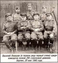 «На следующий день был направлен на фронт. Определили меня рядовым пулеметной роты 2 стрелкового батальона 1038 стрелкового полка 295 стрелковой дивизии. В составе этого полка я дошел до Берлина». И все, будто бы двадцать месяцев последующей войны, отмеченные тремя боевыми орденами, – это всего лишь незначительный эпизод в его военной биографии. И только в 1985 году по настоятельной просьбе сотрудников музея «Молодая гвардия» уже в звании капитана I ранга Василий Иванович Левашов напишет автобиографическую повесть, в которой расскажет об этих днях.