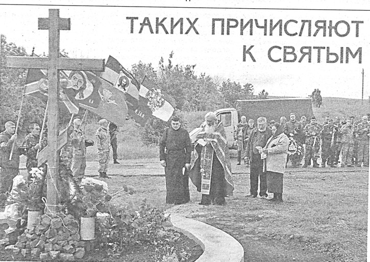 К местным жителям, пришедшим почтить память зверски убитых земляков, защитников Луганщины, присоединились и бойцы бригады, сотрудники народной милиции ЛНР, ополченцы. Для всех собравшихся пиковым моментом стал молебен по мученикам, проведенный священником, отцом Анатолием. Именно он стал инициатором установки памятного креста на месте захоронения бойцов.