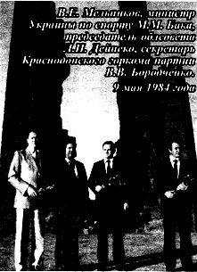 -10 августа 1979 года я был избран председателем Краснодонского городского исполкома. В то время в области 314 коллективов носили имена героев-краснодонцев или зачислили их в свои ряды и 782 – боролись за это право. Над семьями молодогвардейцев шефствовали школьники, помогала им и городская власть. Мы не раз навещали Елену Николаевну Кошевую. Особый размах приобрела эта работа в канун 40-летия создания партийно-комсомольского подполья в Краснодоне. Это было важное событие в общественно-политической жизни области. А. М. Черняков, тогда заведующий отделом культуры обкома партии, передал поручение мне как председателю горисполкома – воздвигнуть мемориал «Непокоренные». Работа предстояла нелегкая, да и сроки на ее выполнение были довольно сжатые. Уже зимой 1981 года приступили к осуществлению величественного замысла наших земляков.