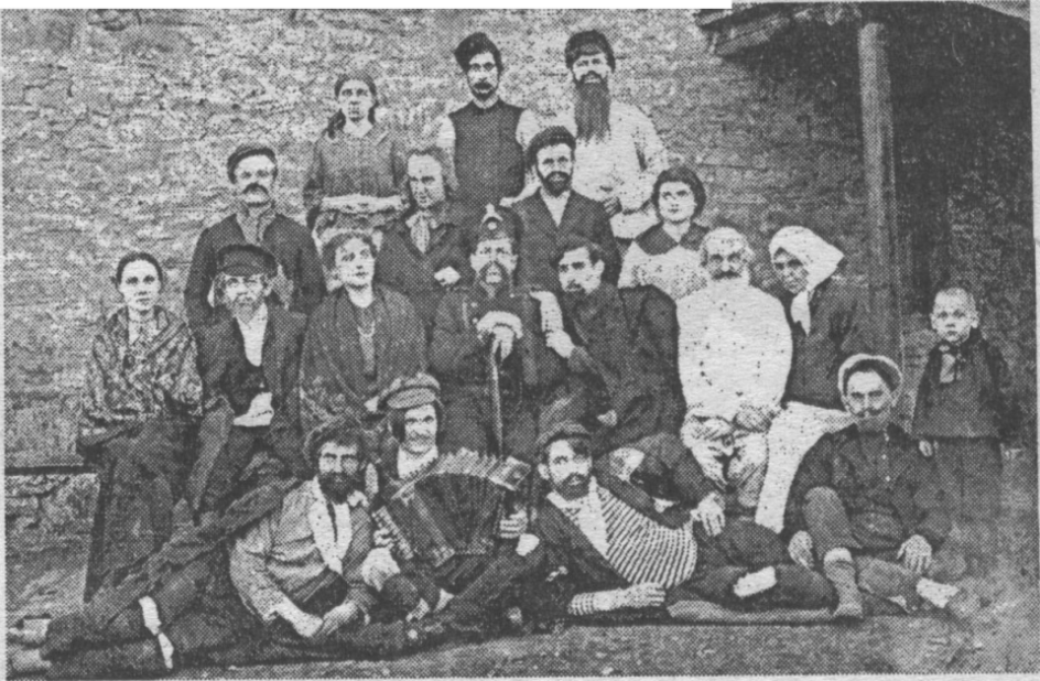 На этом же снимке в первом ряду справа (в кепке) – сам руководитель театра Густав Гартман (тоже в гриме). Во втором ряду, крайняя слева – Анна Степановна Ильина – жена Густава Гартмана. Рядом с ним на снимке стоит мальчик – это их старший сын.