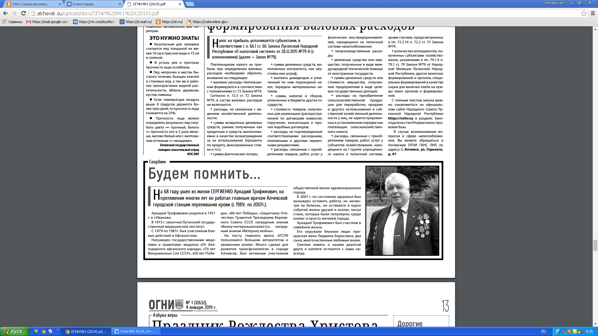 Будем помнить… // Огни. – 2019. – № 1. – 4 января. – С. 12.
