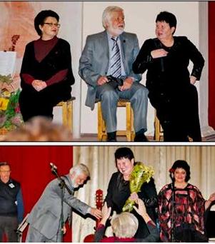 Да, очередной юбилей «Октября» прошел в сложных условиях. Можно было лишь вспоминать, как отмечали 25-летие большим концертом с множеством гостей — среди гостей был даже живой классик и современник Леонид Сергеев. На сей раз гостем стал председатель Луганского отделения Межрегионального союза писателей Сергей Зарвовский. Он поздравил виновников торжества и подарил свои стихи.