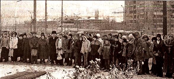 Митинг, прошедший 19 декабря на перекрестке улиц Ленина и Гмыри, собрал близких родственников, представителей городской власти, меткомбината, учащуюся молодежь, жителей города.