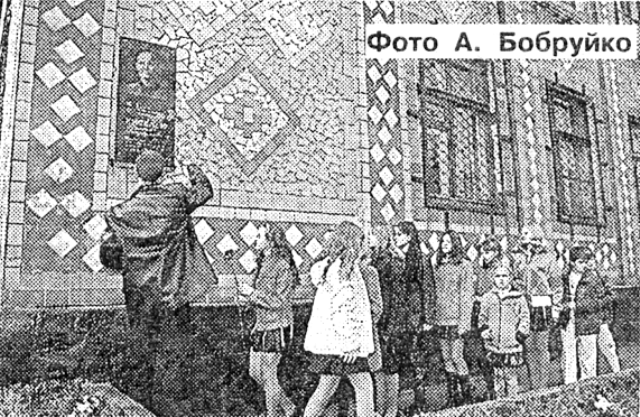 В зале заводского музея у экспонатов воспитанники детско-юношеских клубов «Гайдаровец», «Ровесник», «Чайка» (педагоги-организаторы Н. П. Новицкая, Л. С. Ефимцева, O. A. Солёная, директор КГО ДЮК Н. И. Акимова) под аплодисменты присутствующих замечательно исполнили песни военных лет, читали стихотворения, впечатляли танцами.
