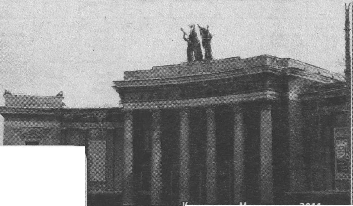 Что-то гулко упало с потолка. Это обваливались куски лепки в зрительных залах, за опечатанными дверями. Звуки эти пугают сторожей по ночам, отдаваясь гулким эхом в пустом здании. По слухам, в залах картина еще страшнее, чем в фойе, и дождь льет через дыры в потолке как из ведра. Наверное, здесь, как в старых замках, должны быть привидения. И, может быть, под темными сводами витает дух Генриха Кухенройтера, автора «Триумфа Победы», скульптуры, установленной на фронтоне кинотеатра, или его строителей – пленных немцев и бывших фронтовиков, инженера А. И. Скорика, руководившего всеми работами, автора проекта архитектора Панченко, да и самого Петра Арсентьевича Гмыри, в то время директора завода, без которого было бы немыслимо возведение этого великолепного храма искусств.