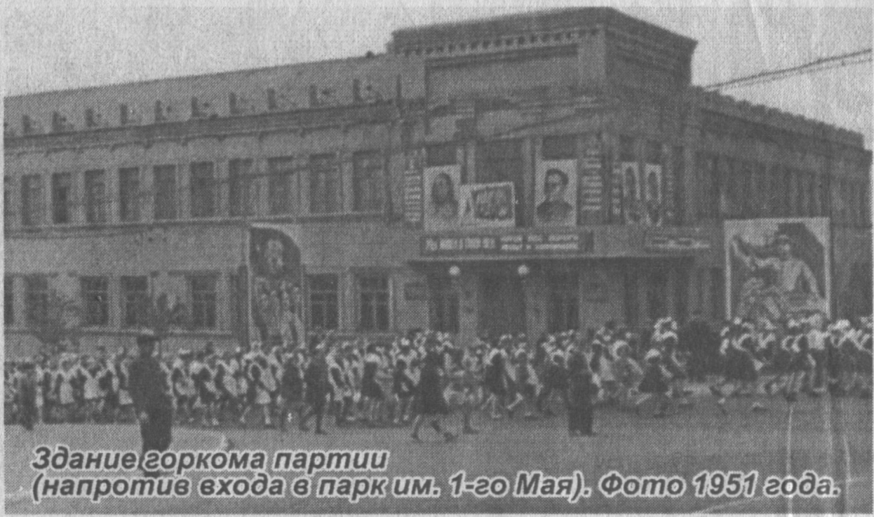 От Дворца Пионеров до колхозного рынка (располагался там, где впоследствии был разбит парк им. 1-го Мая), раскинулась великолепная дубовая роща. В этой роще по вечерам, по выходным и праздничным дням происходили массовые народные гуляния. Между дубов – раковина оркестра. В то время почти каждый цех завода имел собственный духовой оркестр (на демонстрациях они шли впереди колонны). Оркестр играл каждые выходные – бесплатно, для гуляющих.